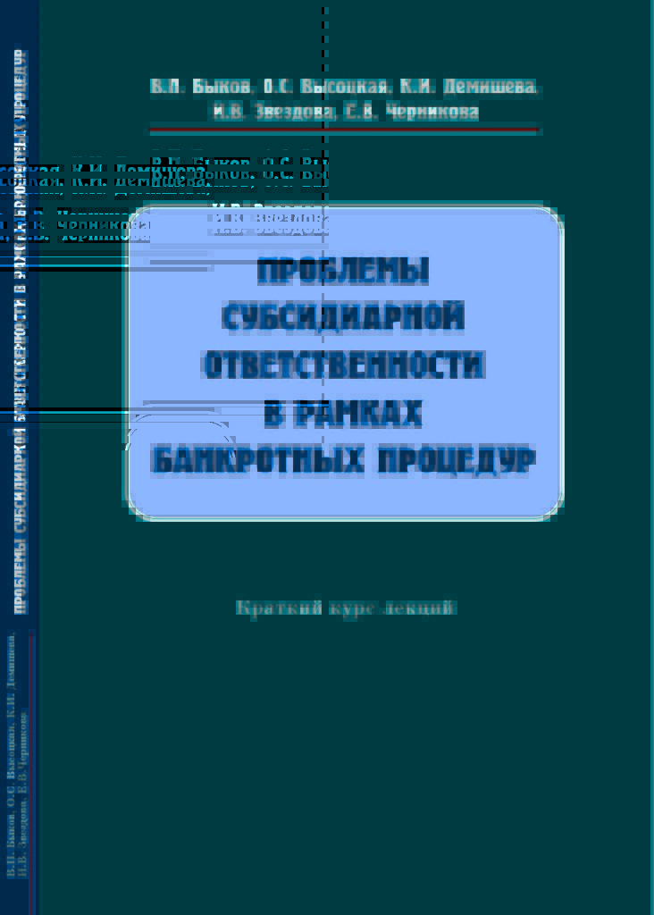 Краткий курс лекций включает программу, методические указания, лекции, вопросы для подготовки к зачету, темы курсовых и выпускных (дипломных) работ, список литературы по изучению курса «Проблемы субсидиарной ответственности в рамках банкротных процедур».